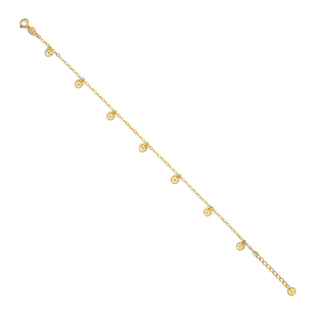 The jewelry's material is composed of 14-karat gold, which means it contains 58.3% pure gold mixed with other metals for strength and durability. This 14k gold alloy offers a beautiful balance of gold's natural allure and the ability to withstand daily wear and tear.