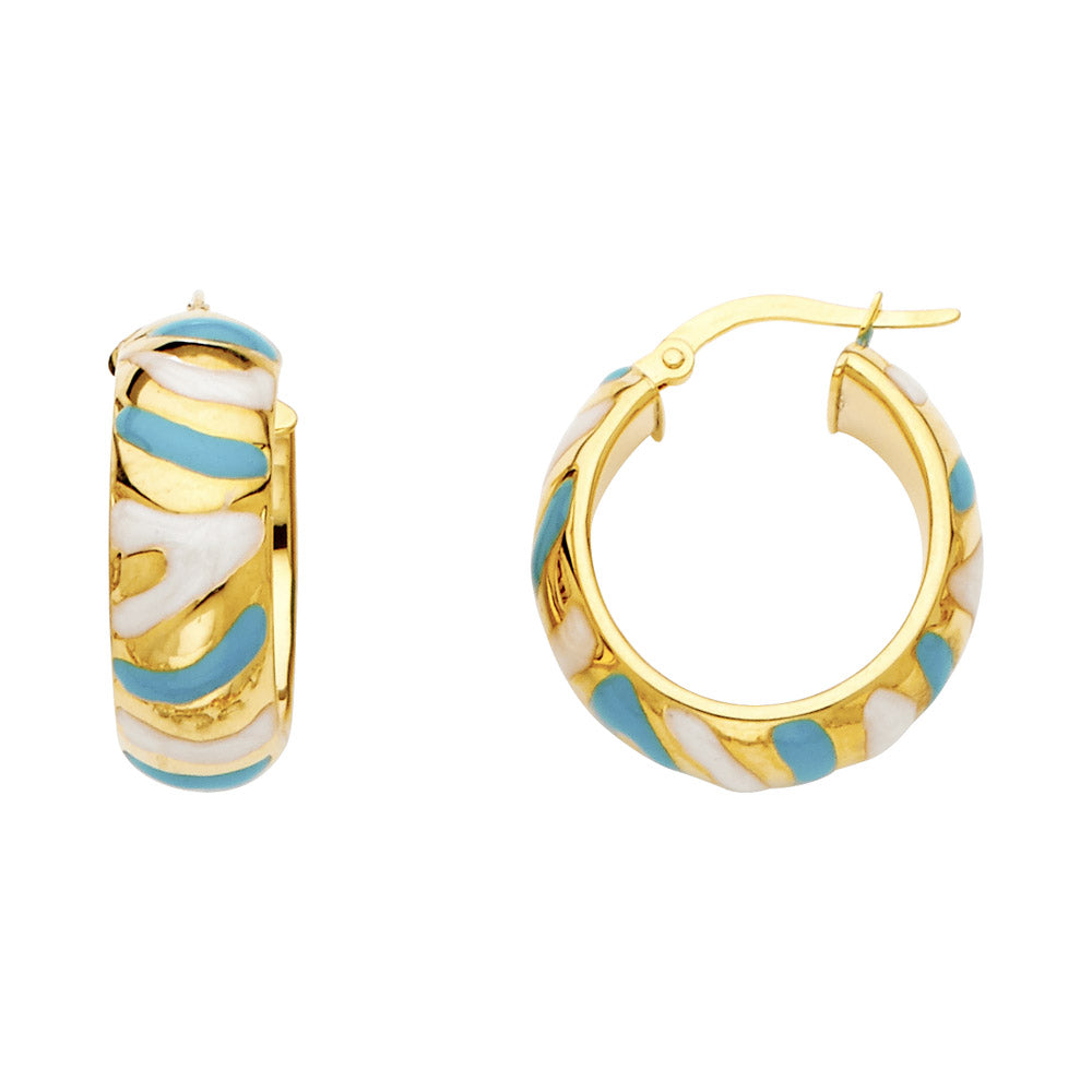 - 14K gold with blue and white enamel